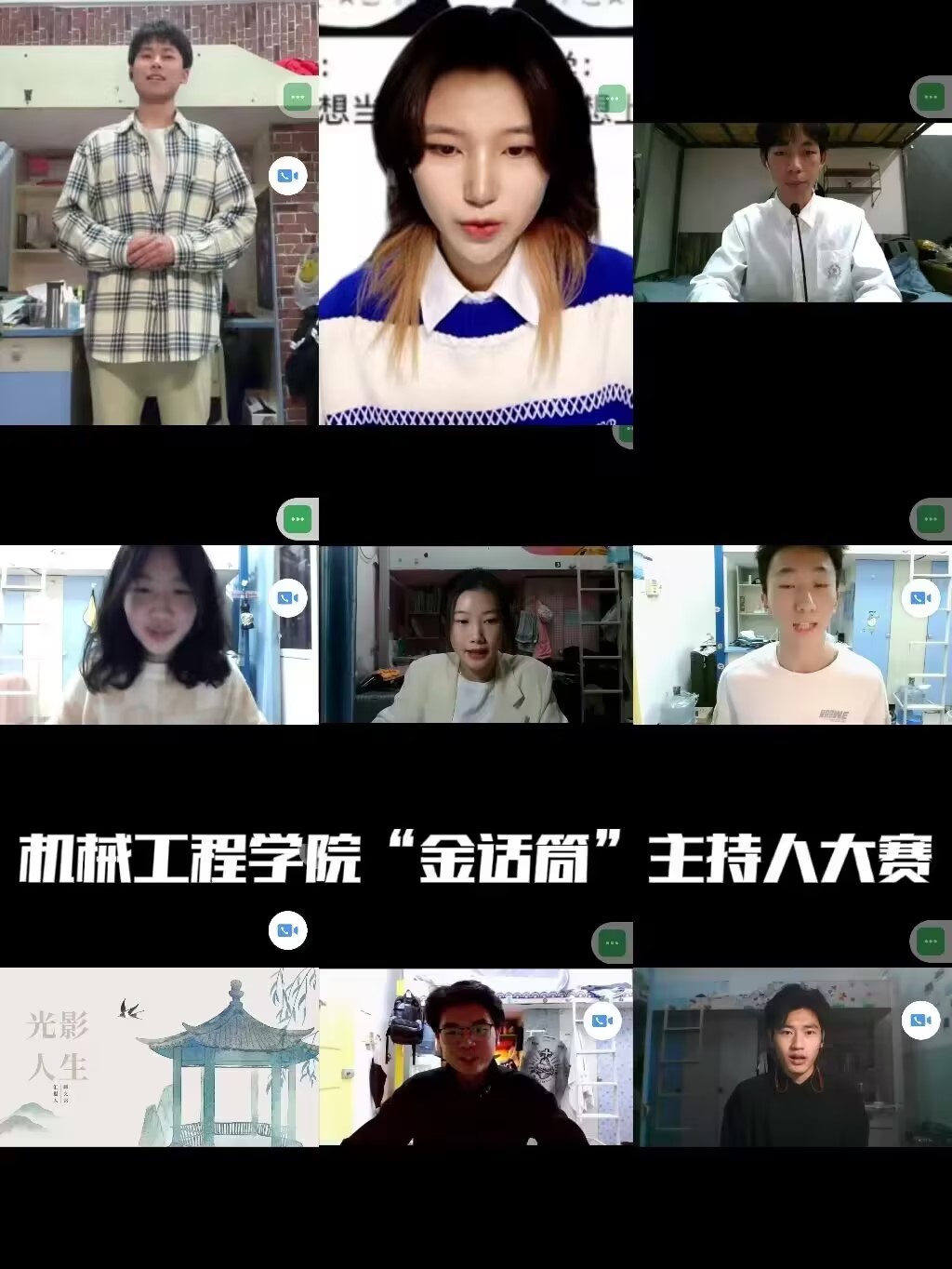 K1体育2022年11月27日在企业微信举行线上金话筒主持人大赛,参加此次大赛的有来自不同专业的参赛选手。这次比赛由新闻播报和模拟主持两部分组成。新闻播报需要选手随机抽取一个题目,30秒的阅读后随即进行两分钟内的新闻播报,模拟主持由选手自选主题,然后进行2-3分钟的主持。