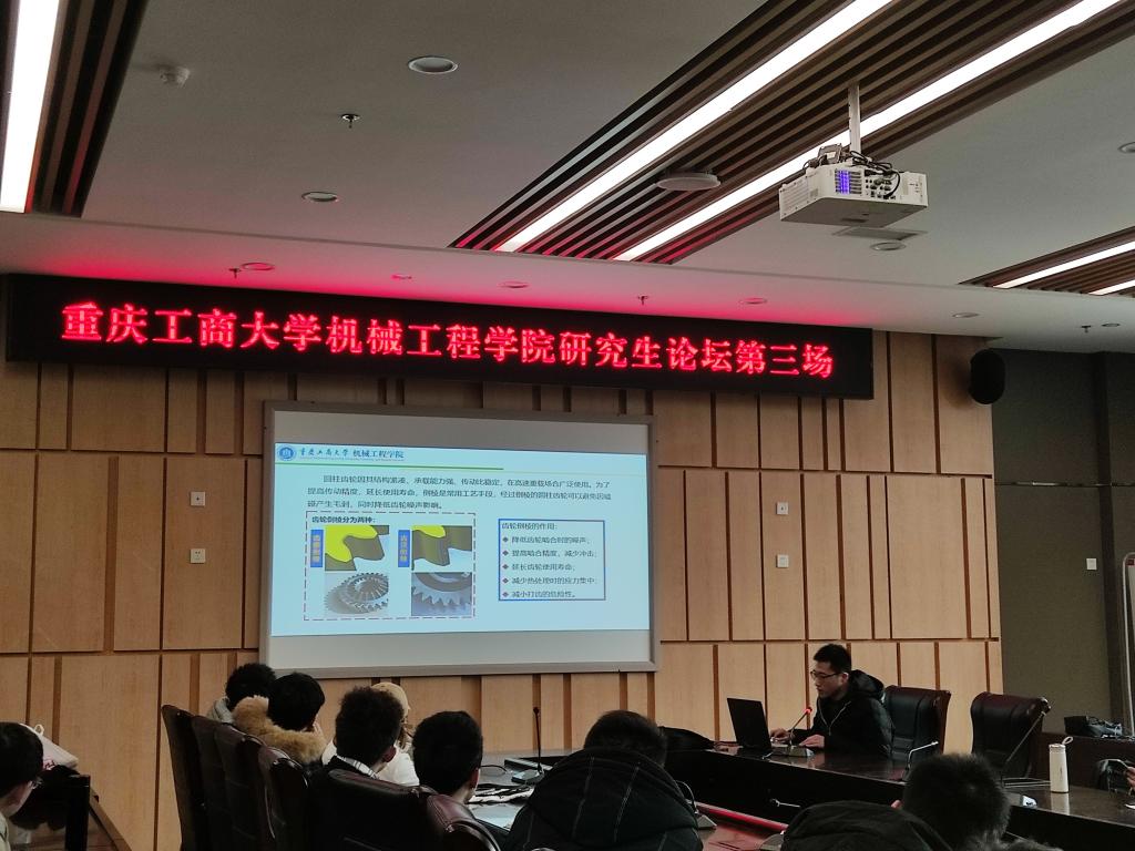 2020级研究生李博讲述了一种绿色先进的高速干切滚齿技术,从干切和湿切的差异性、滚齿加工的热影响以及滚齿机床温度场的分布优化三个方面,带领同学们实时跟进国内外齿轮制造技术的发展与革新,开阔了视野。